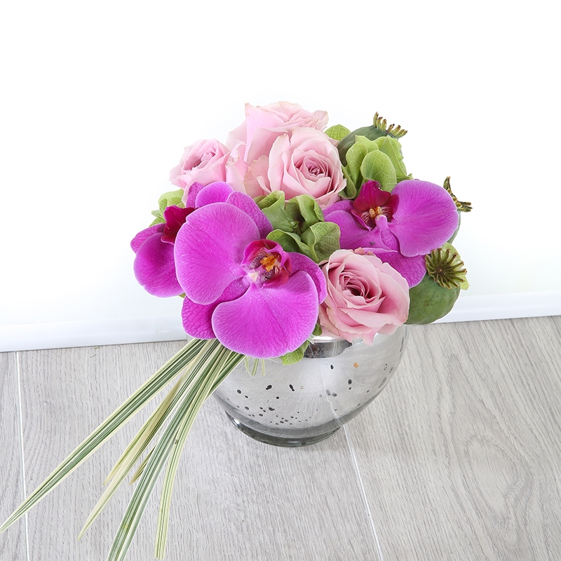 Venus, the goddess of love and beauty, is the perfect name for this stunning arrangement. With beautiful Phalaenopsis Orchids displayed in a silver vase, Venus is a perfect romantic gift.